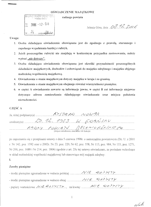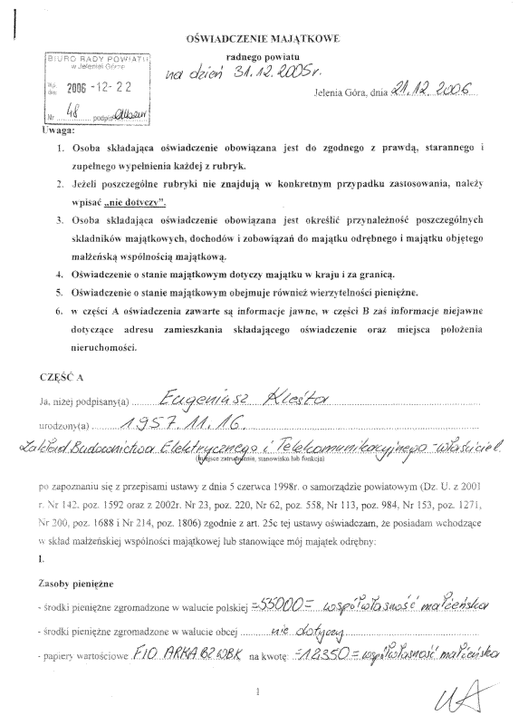 | Nazwa dokumentu: | Oświadczenia majątkowe radnych III kadencji Rady Powiatu |